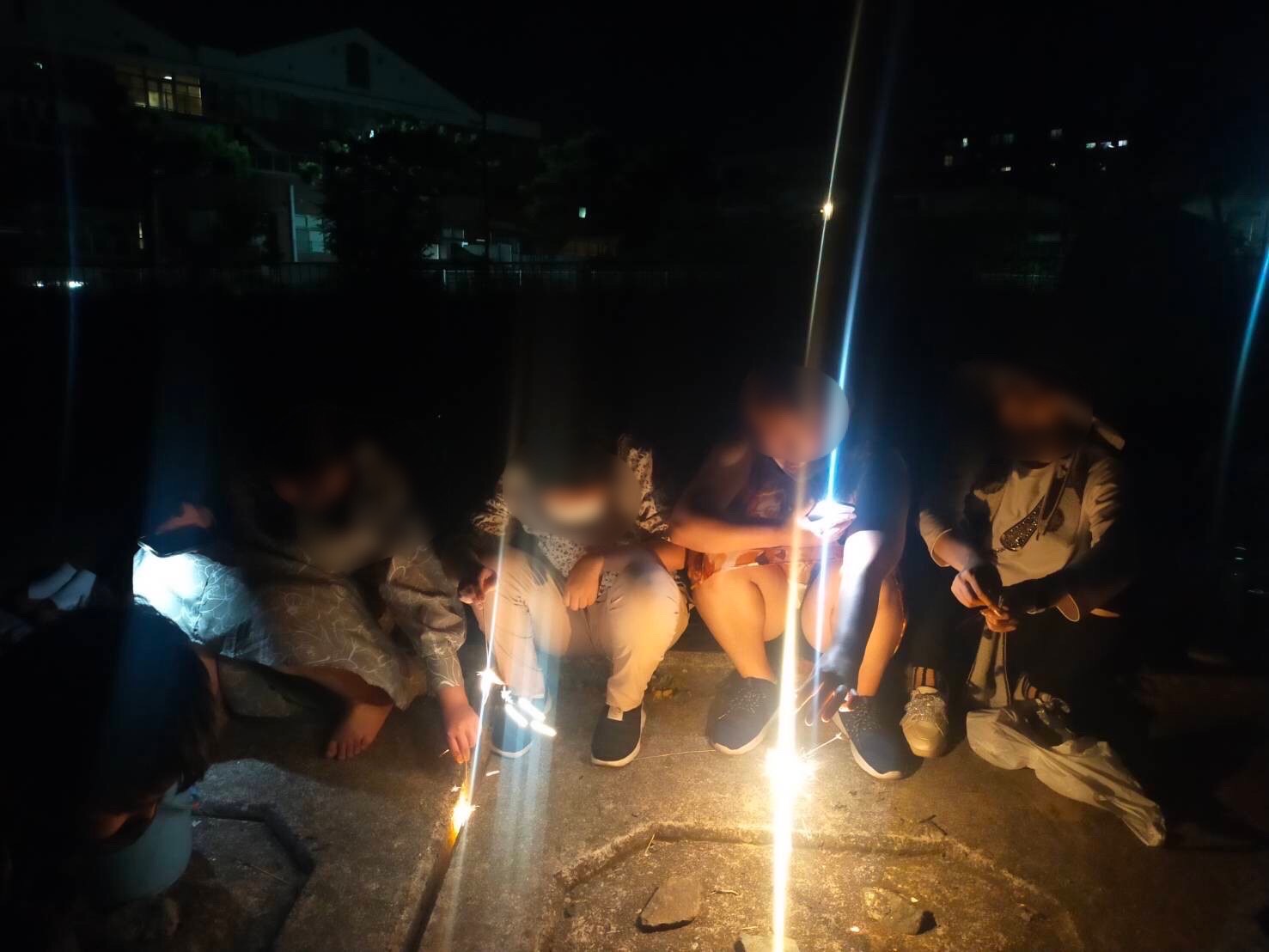 みなさんホームで退屈されている様子でしたので、花火をすることになりました